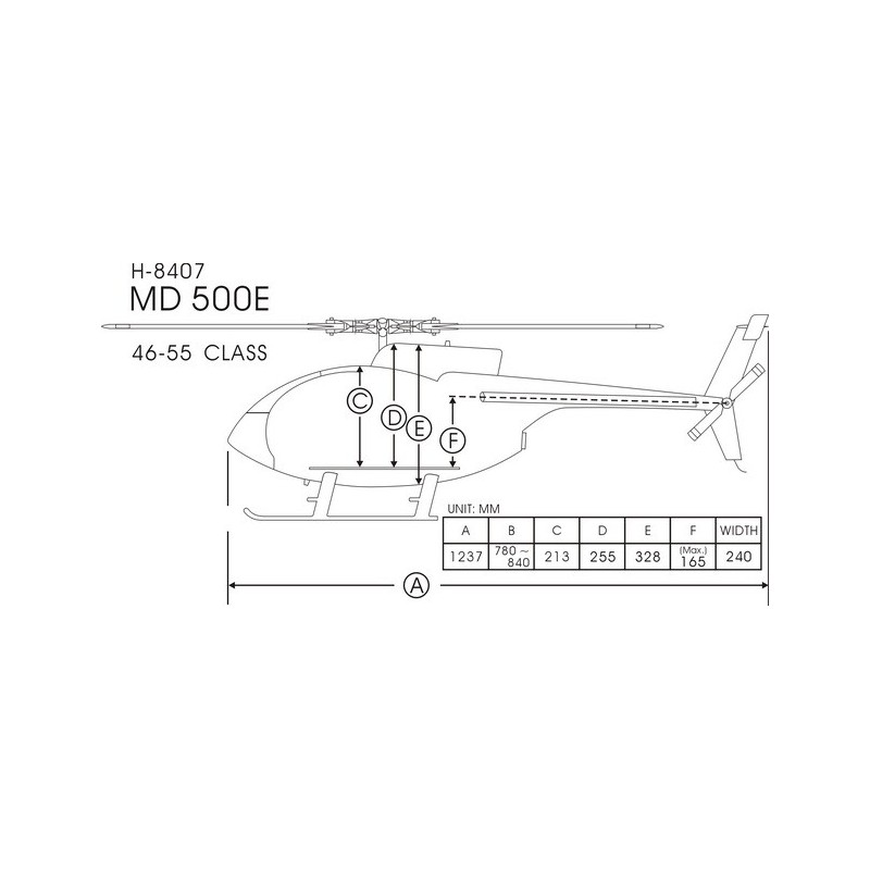 Fuselage en fibre HUGUES MD-500-E “Bretling” pour T-rex 600 Electrique, Compass classe 600.